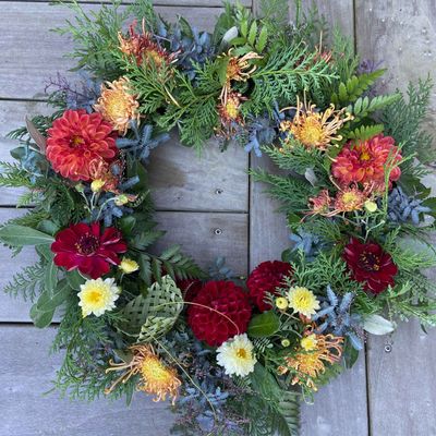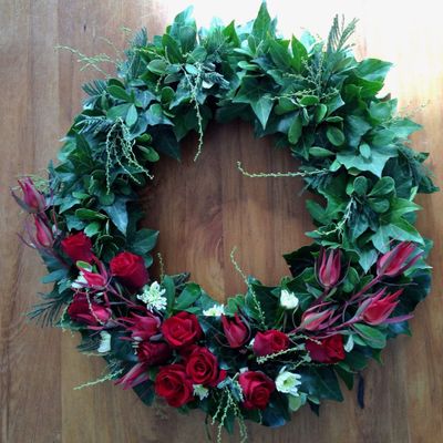 They are each created using fresh flowers and foliage onto a recyclable ring wreath base in the tradition of the original ANZAC "lest we forget" wreath.