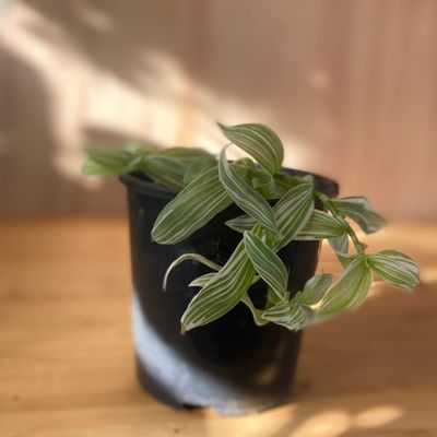 I swear, this plant grows an inch a week. I guess that's why its called an Inch Plant. A hanging plant with variegated light green/white leaves. Produces pretty white flowers that looks just like its leaves. Size 20cm.